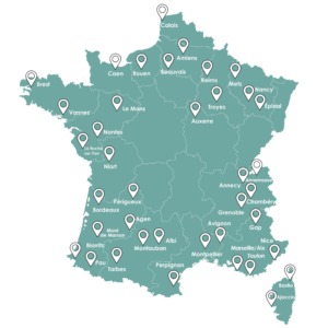 Ajaccio, Amiens, Annecy, Auxerre, Beaune, Biarritz, Bordeaux, Brest, Calais, Chambéry, Fréjus, Gap, Grenoble, Le Mans, Marseille, Metz, Montpellier, Nancy, Nice, Niort, Perpignan, Reims, Rouen, Toulon, Troyes, Vannes… (Liste non exhaustive).