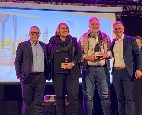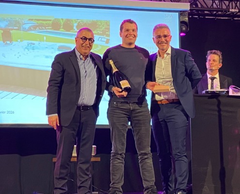 Comme chaque année, la soirée de gala a été l’occasion de distinguer les plus belles réalisations en matière de Piscines, Spas et M’Water (5 récompensés), ainsi que des parcours individuels remarquables au sein du réseau (3 récompensés).